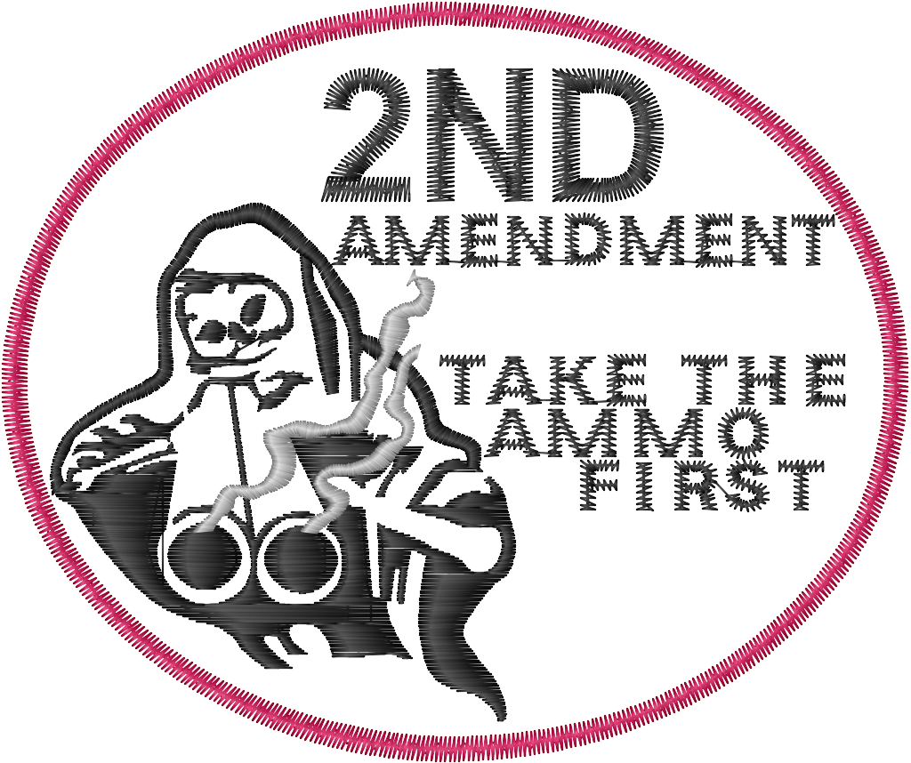 If they come to take it Mercurial Designs suggest we give them the ammo first. Ammo first is just over 3’ wide and should make it clear that the 2nd Amendment shall not be infringed, on pain of high speed pellets or slugs. A must have for every red blooded American. Fully customizable.